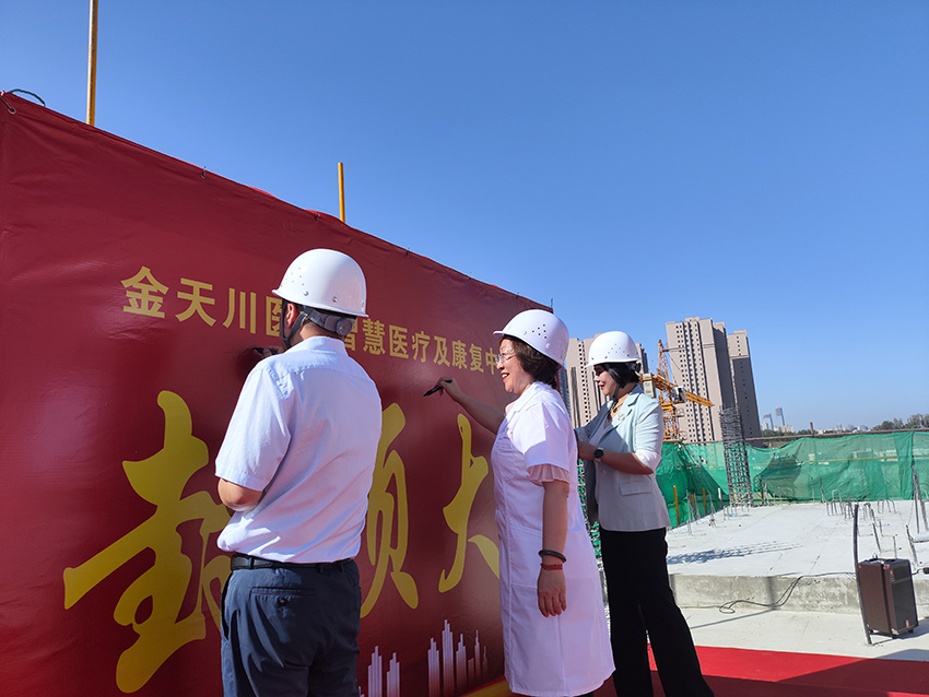 9月3日上午,金天川醫(yī)院隆重舉行喜封金頂儀式。今天的儀式發(fā)展重要的全體醫(yī)護(hù)人員,施工單位,設(shè)計(jì)單位,監(jiān)理單位代表參加了今天的封頂儀式。集團(tuán)公司副總經(jīng)理、金天川醫(yī)院總經(jīng)理劉昆女士發(fā)表了熱情洋溢的講話,劉昆副總強(qiáng)調(diào)今天是醫(yī)院發(fā)展史上的一個(gè)里程碑,金天川醫(yī)院即將翻開(kāi)嶄新的一頁(yè)。施工單位新疆七星科技股份有限公司代表現(xiàn)場(chǎng)進(jìn)行了表態(tài)發(fā)言,表示將保證醫(yī)院大樓能夠保質(zhì)保量如期交付使用。隨著封頂禮炮燃起,最后一罐混凝土完成澆筑,標(biāo)志著醫(yī)院正式封頂!