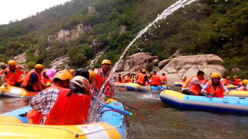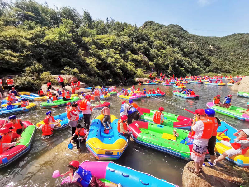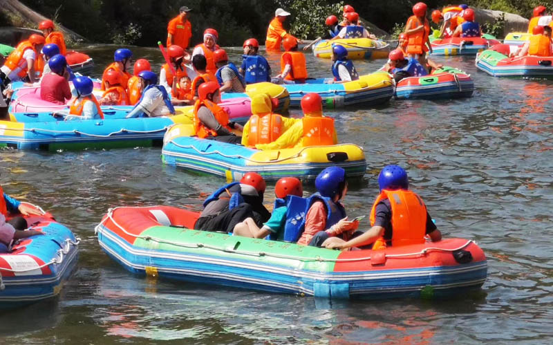 在悠長(zhǎng)的河谷中,一座座山嶺飛恃岸邊,形成數(shù)個(gè)S道,一彎未過(guò),一彎又起,峰回路轉(zhuǎn),彎彎相連,給人以“山重水復(fù)、柳暗花明 ”的不同感受。大家一起打水仗、撞劃艇,嬉笑聲、吶喊聲此起彼伏,不絕于耳,仿佛回到了童年,忘記了城市的喧囂,忘記了生意的煩惱、修理的勞累,歡笑聲匯集成了一首首歡快的贊歌。