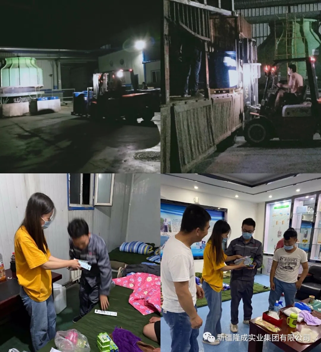 2020年7月29日凌晨,烏魯木齊疫情防控的第13天,天空掀起了夜幕,而在烏魯木齊市華泰隆化學(xué)助劑有限公司因?yàn)橐咔榉揽乇9┕ぷ?,?7名員工全部住在了廠里,人事行政部連夜購置生活用品和被褥等物資,忙碌了一天的工友們擠在更衣室的大通鋪上稍作休整。