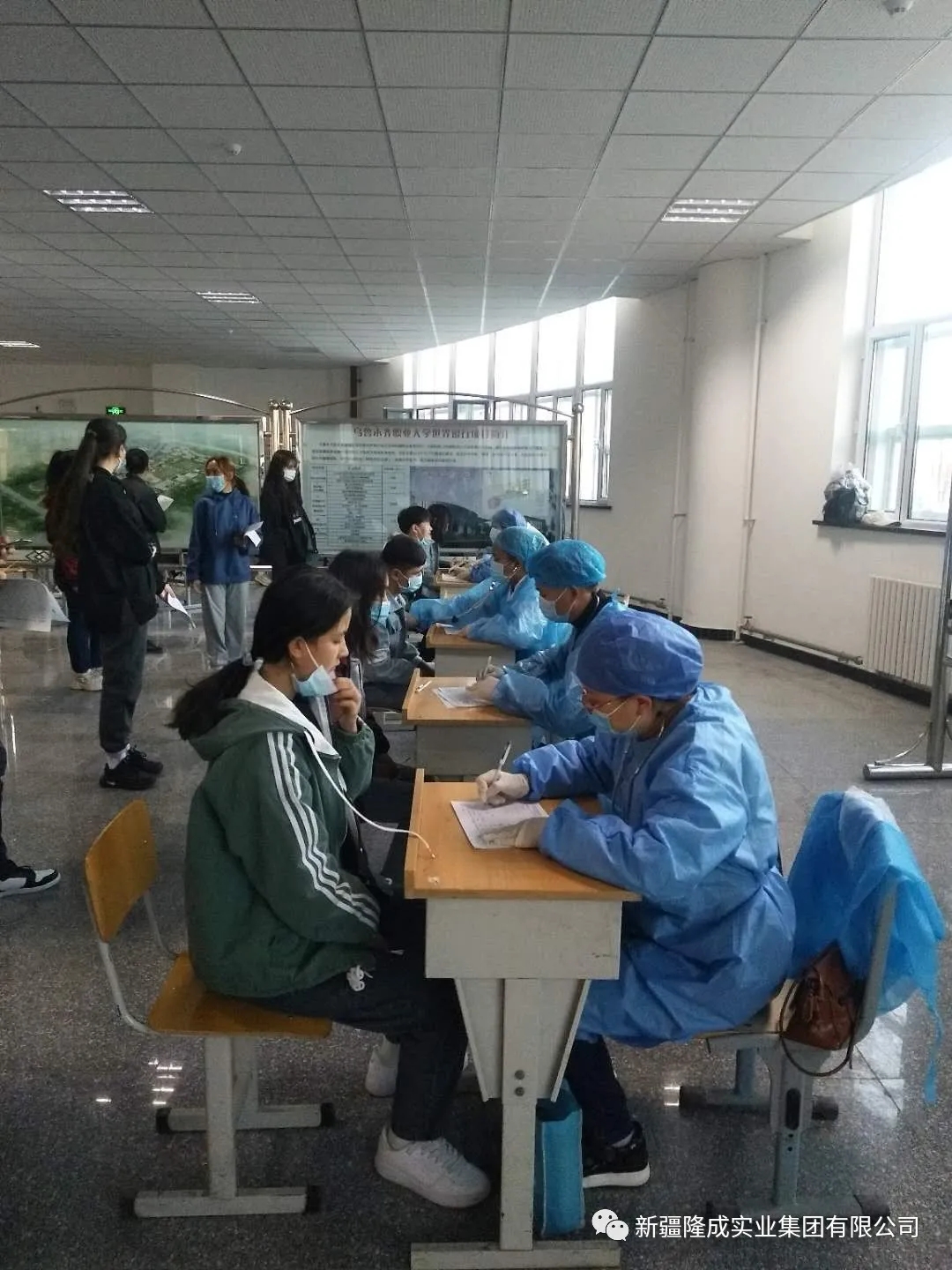 此次大學(xué)生體檢正值烏魯木齊疫情防控的特殊時期,體檢學(xué)生人數(shù)多、疫情防控要求嚴(yán)、現(xiàn)場組織難度大。體檢過程中,全體醫(yī)護(hù)人員嚴(yán)格落實(shí)疫情防控相關(guān)規(guī)定,嚴(yán)格執(zhí)行登記、測溫、消毒、戴口罩、1米間距、通風(fēng)等防范措施,現(xiàn)場配備急救車、急救藥品,現(xiàn)場指揮人員及時疏導(dǎo)體檢大學(xué)生,提醒有關(guān)防疫注意事項(xiàng)和要求,確保了體檢任務(wù)圓滿完成、疫情防控萬無一失。擔(dān)負(fù)此次體檢任務(wù)的金天川醫(yī)院、金橋社區(qū)衛(wèi)生服務(wù)中心的內(nèi)科、外科、B超、心電圖、檢驗(yàn)科、口腔科、眼科等43名醫(yī)務(wù)人員。