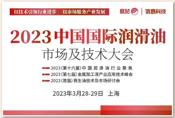 由易貿(mào)信息科技主辦的“2023中國國際潤滑油市場及技術(shù)大會——2023(第十六屆)中國潤滑油行業(yè)聚焦、2023(第七屆)金屬加工液產(chǎn)業(yè)應(yīng)用技術(shù)峰會、2023(首屆)再生油技術(shù)及市場研討會”將于2023年3月28-29日在上海召開。金雪馳作為國家級重點(diǎn)專精特新“小巨人”企業(yè)受邀參會。